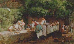 Sceneri Med Vaskekoner Ved En Flod, Italien