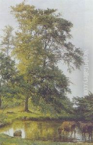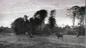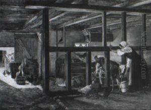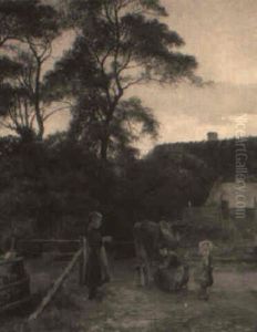 Koerne Malkes, Landskab Med Bonder Og Koer Ved Solnedgang