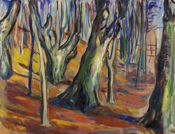 Elm Forest in Spring Oil Painting by Edvard Munch