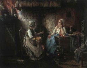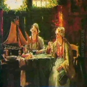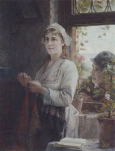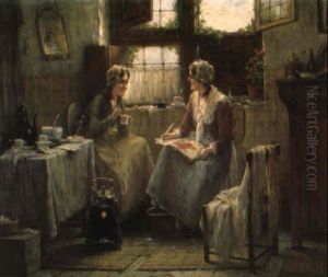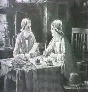 Girls In A Cottage Interior