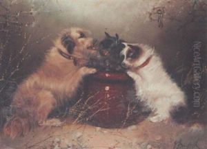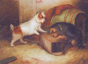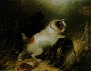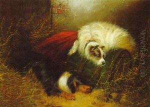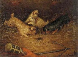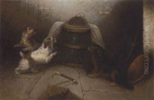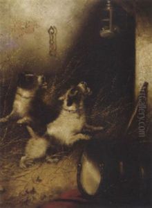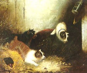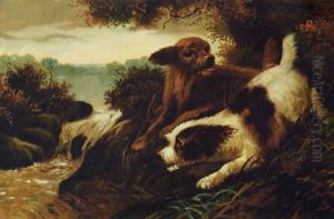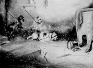 A Setter And A Terrier Ratting In A Barn