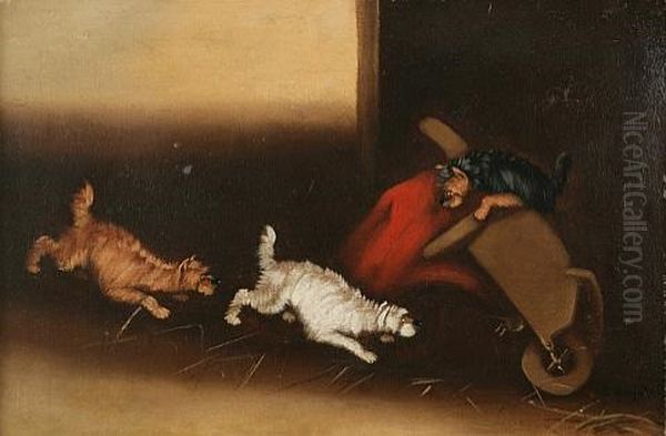 Terriers Ratting Under A Wheelbarrow
