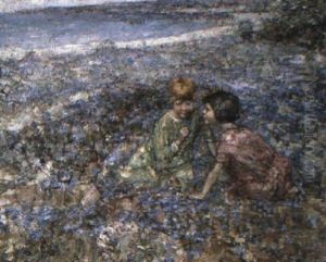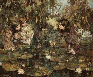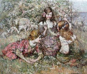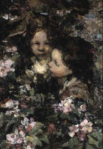 Fillettes Au Papillon Dans Un Buisson De Fleurs