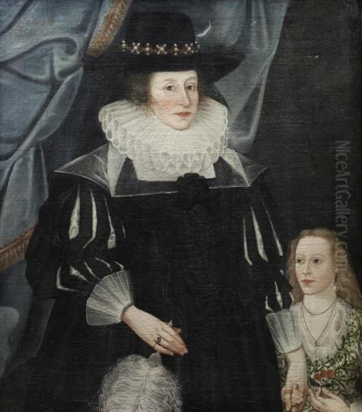Portrait Of Catherine Babington And Her Daughter Lucy, Standing Before A Blue Curtain