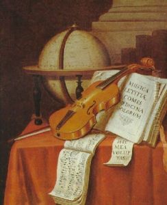 Stilleben Mit Globus, Geige Und Notenbuchern