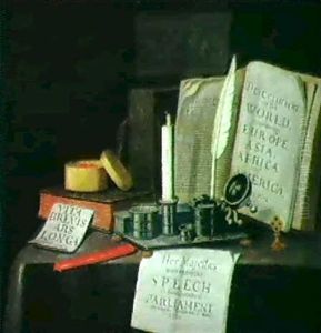 Trompe-l'oeil Still Life With Papers, Spectacles, Feathers And Print Of A King