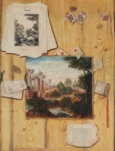 A Trompe L'oeil Painting Of A Print After Raphael Attached To A Panel