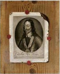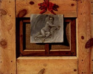 A Trompe-l'oeil Portrait Of An Engraving Of Desiderius Erasmus Affixed To Pine Panelling