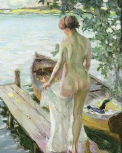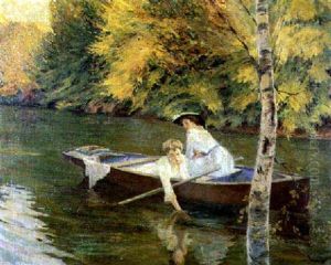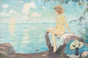 Zwei Damen Am Seeufer, Segelboote Betrachtend