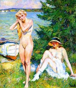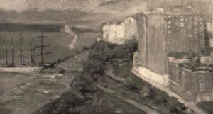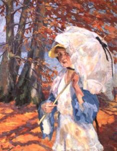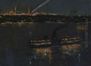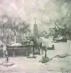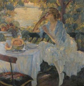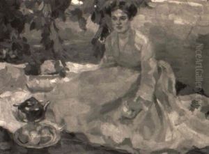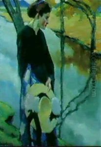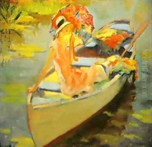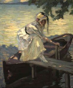 Madchen Im Boot [verso: Dampfschiffen Bei Sonnenuntergang [med: Olstudie; Ca: 1920]