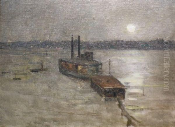 New York Ferry Oil Painting by Edward Emerson Simmons