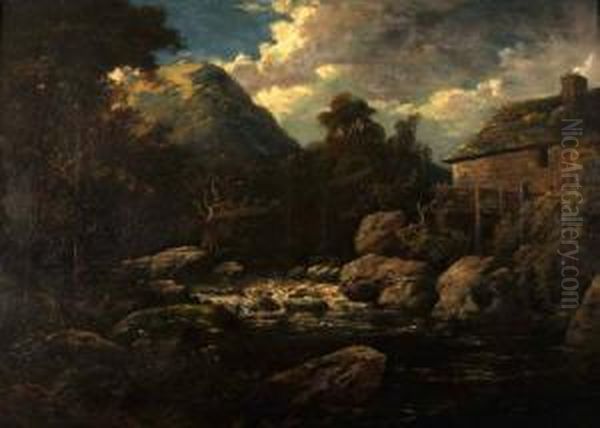 Welsh Mountain River Landscape With Mill