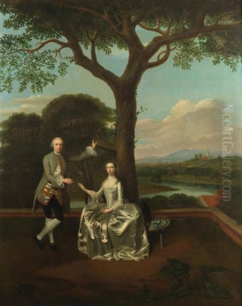 Portrait Of David Gavin Of Gavinton & His First Wife, Christine, Full-length, Before A Landscape
