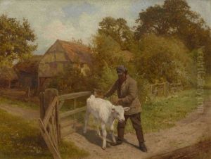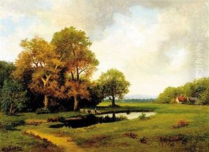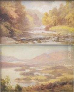 Cattle Grazing At Sunset (+ Fishing On The River, Oil On Canvas; 2 Works)