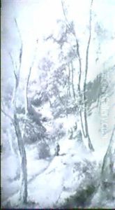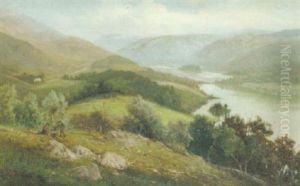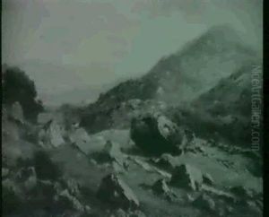 A Moorland Landscape With Figures Gathering Wood