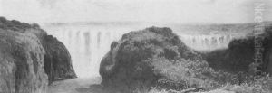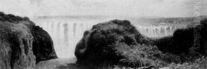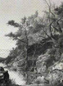 Figures By A Waterfall In A Wooded Landscape