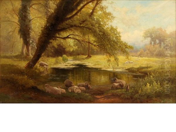 Sheep Watering In A Glade