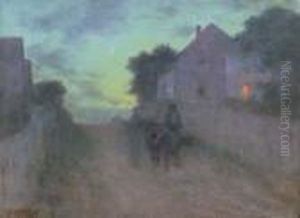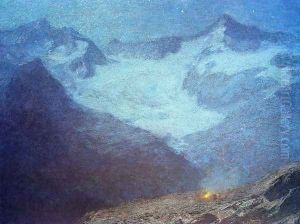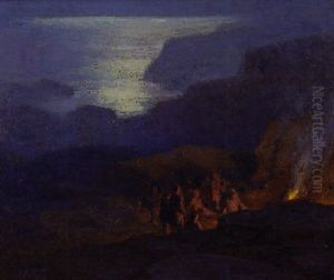 Moonlit Beach Scene With Figures Around A Campfire