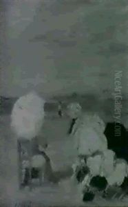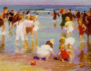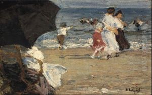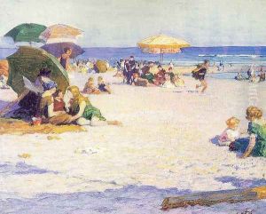 New England Coastal Beach Scene With Figures