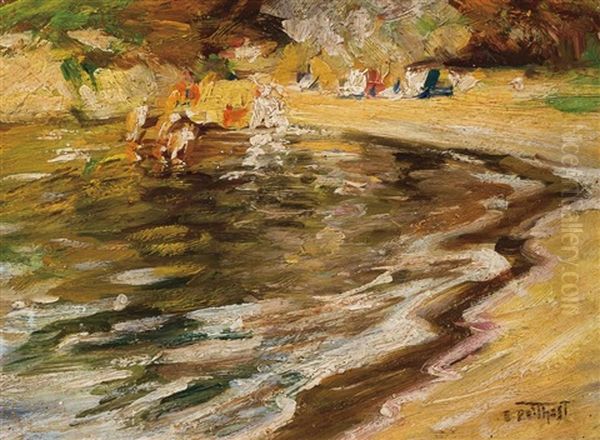 Bring the timeless beauty of Edward Henry Potthast's Beach Scene - At The Water ("also Sunday Beach") into your home with a handmade oil painting reproduction. Carefully recreated on canvas by skilled artists using traditional techniques, this piece captures the delicate brushwork, subtle light, and vibrant color of the original masterpiece. With museum-level quality and rich texture, it brings elegance and artistic depth to any space. Enjoy free shipping and make this masterpiece a part of your personal collection.