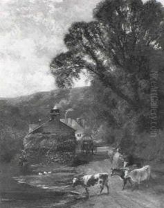 Cattle Watering By A Village