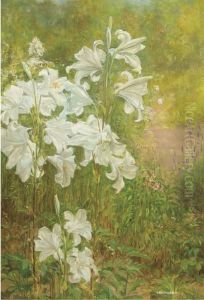 Lilies, Delphiniums And Poppies In The Garden Of The Artist's Cottage At Ashton Under Hill