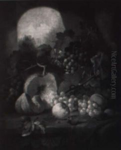 Still Life With Grapes, Raspberries, Apples And A Peach On A Marble Ledge
