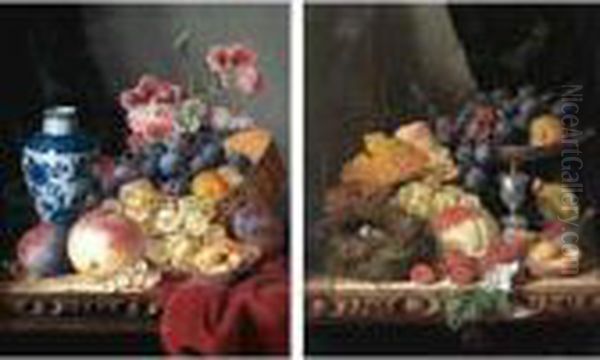 Still Life With A Blue And White Vase, Peaches And Grapes; Still Life With A Bird's Nest, Fruit And A Silver Tazza