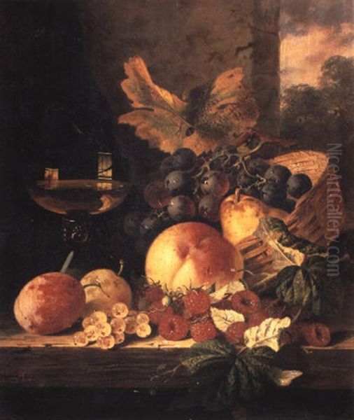 Still Life With Fruit And A Wine Glass Oil Painting by Edward Ladell