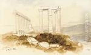 The Temple Of Olympian Zeus With The Acropolis Beyond, Athens