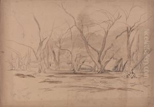A View of the Roman Campagna with Travelers Passing a Ruined Brick Tomb, an Aqueduct in the Distance