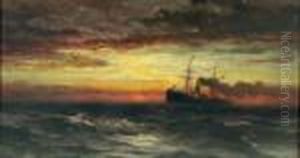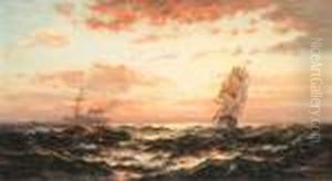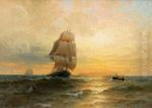 Ships At Sunset Oil On Canvas
