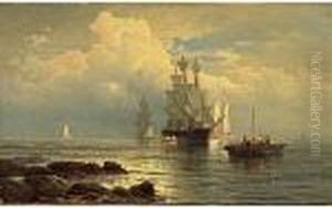 A Packet Ship Backing Sails In Outer Boston Harbor