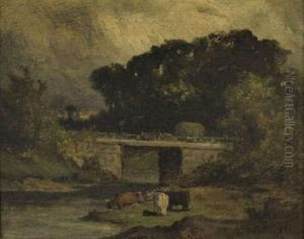 Untitled (landscape With Bridge And Cows)