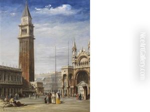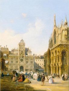 Figures Beside The Basilica Of San Marco And The Torre Dell'orlogio, Venice