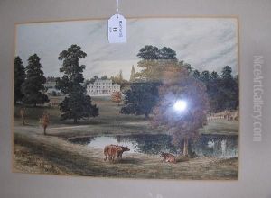 Cattle By A Pool In Parkland Before A House, 1856