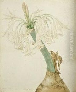 Feeding The Chickens Before A Cottage, A Windmill Beyond