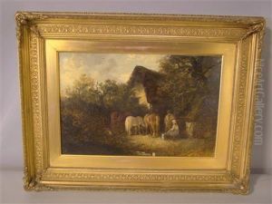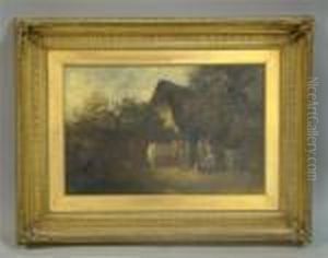 Country Folk With Horses Outside Their Cottage