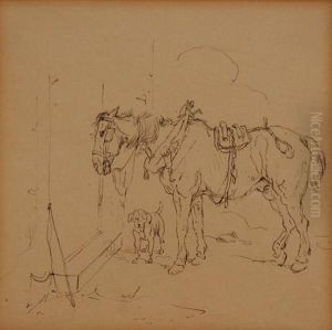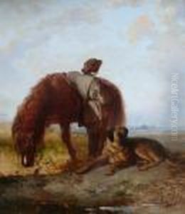 The Gamekeeper's Donkey And Dog Waiting By A Tree