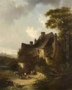 Figures Before A Farm In An Extensive Landscape
