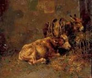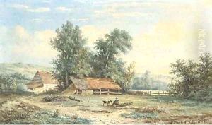 Country Folk With Horses Outside Their Cottage Oil Painting by Edward Robert Smythe