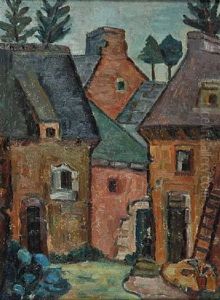 For the best visual impact, hang your Country Folk With Horses Outside Their Cottage at eye level in a well-lit area, preferably with indirect natural light or soft artificial lighting. Avoid direct sunlight and high humidity areas to protect the artwork.