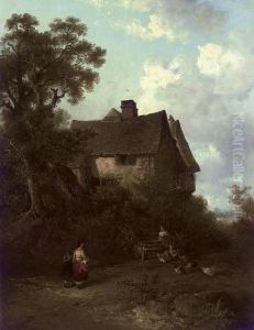 Figure Before A Cottage Oil Painting by Edward Robert Smythe