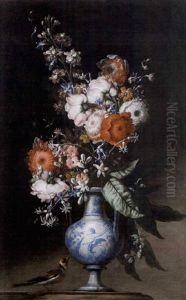 Still Life Of A Writer's Desk With Blue And White Vase