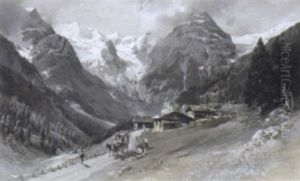 Hochgebirgslandschaft Mit Steingebauden Vorn