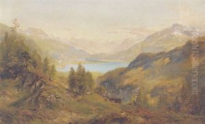 Sommerliche Gebirgslandschaft Mit Kuhen Am Gewasser