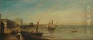 Coastal Scene With Figures And Fishing Boats