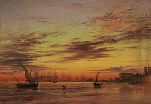 Sunset On The Lagoon Of Venice, Church Of Isola Di San Giorgio In Alga In The Distance; And Santa Maria Della Salute, Venice: Evening