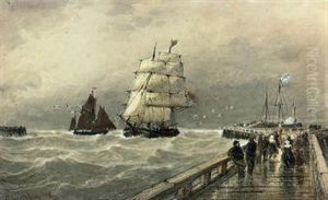 Calais Harbour, View Of Old Pier And Fort Rouge With Sloop Entering
