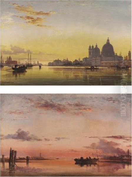 Sunset On The Lagoon Of Venice, Church Of Isola Di San Giorgio In Alga In The Distance; And Santa Maria Della Salute, Venice: Evening